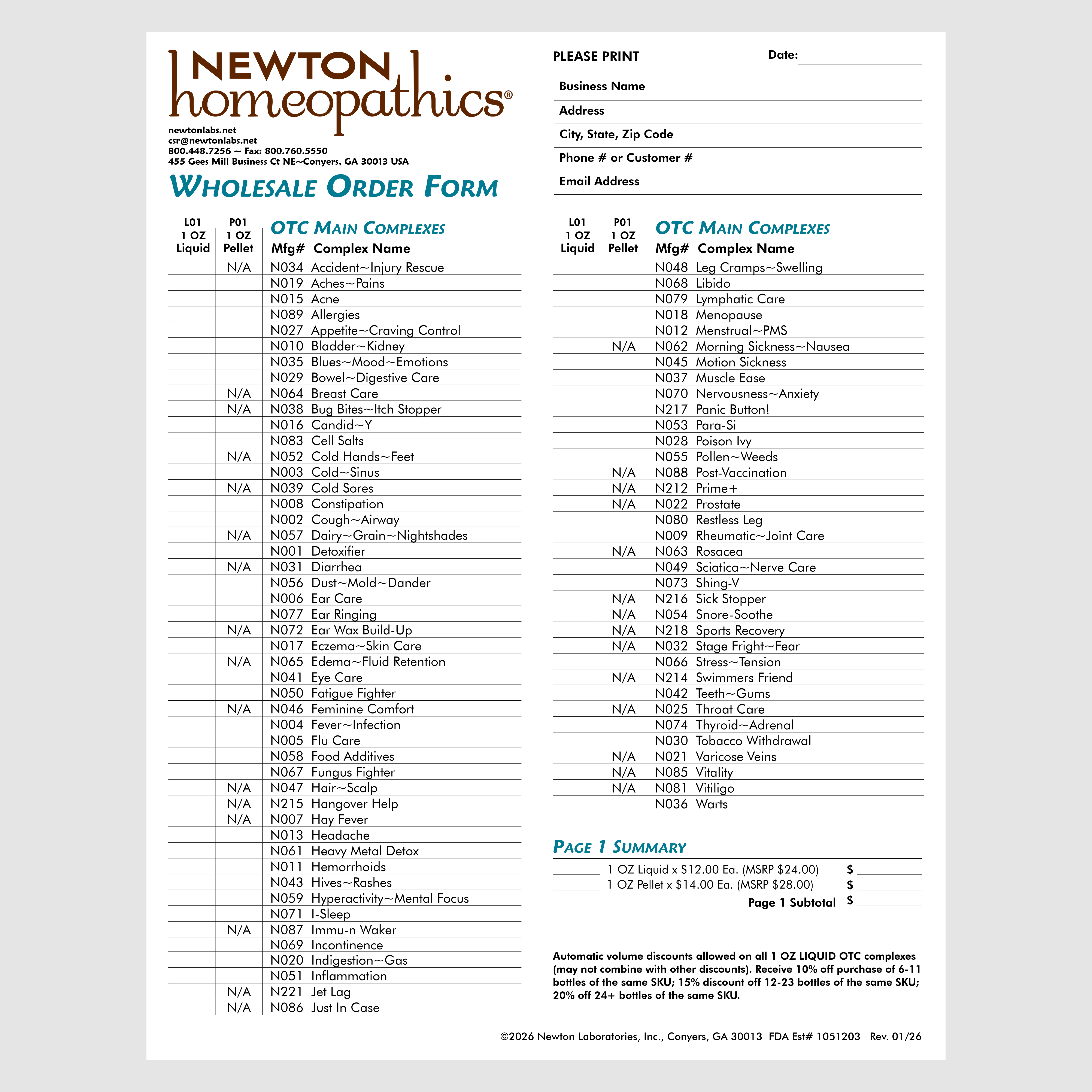 NEWTON homeopathics OTC Wholesale Order Form