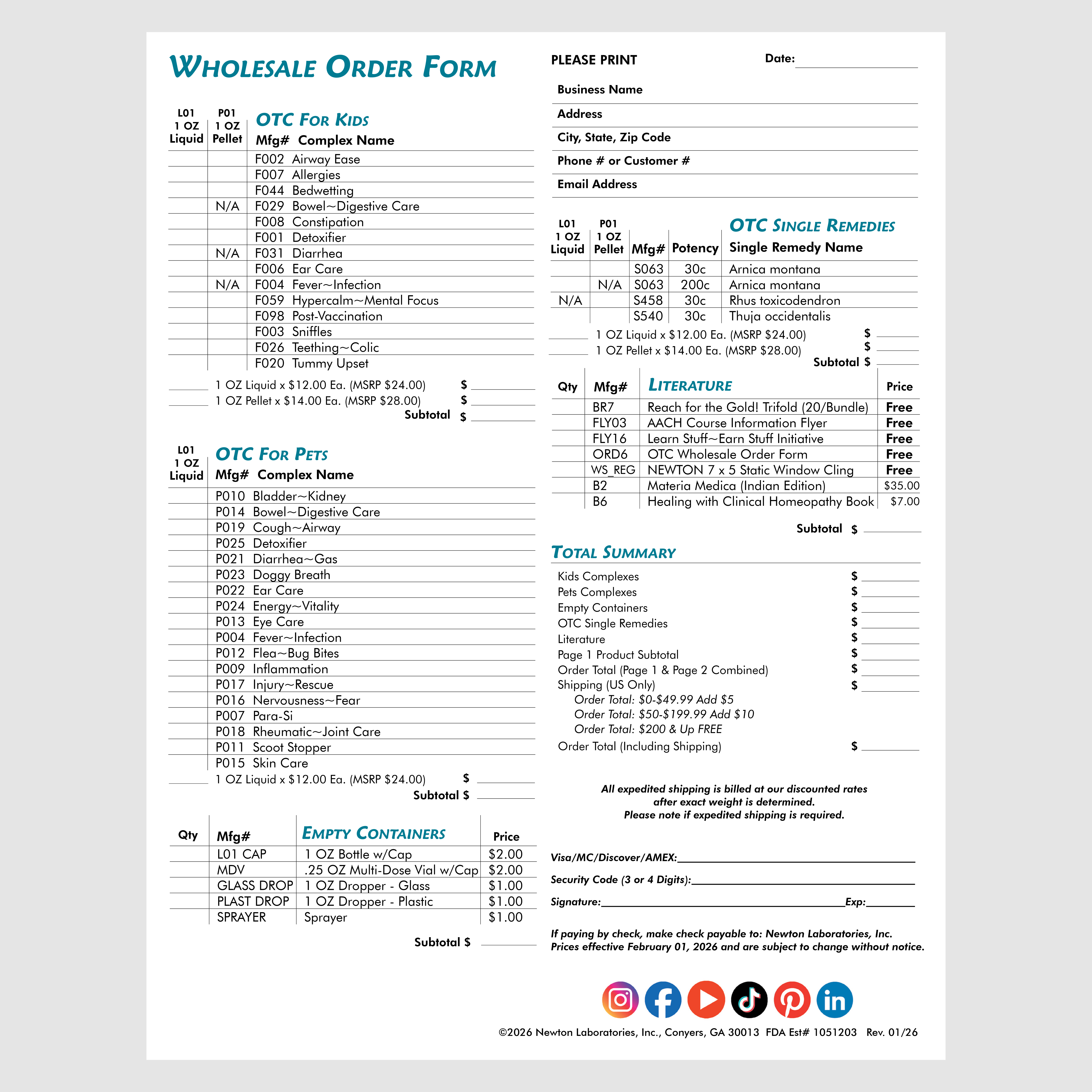 This interactive order form includes all NEWTON homeopathics® OTC products available for purchase with pricing. You may add this to your order or view/print/ this order form by clicking on the link below.