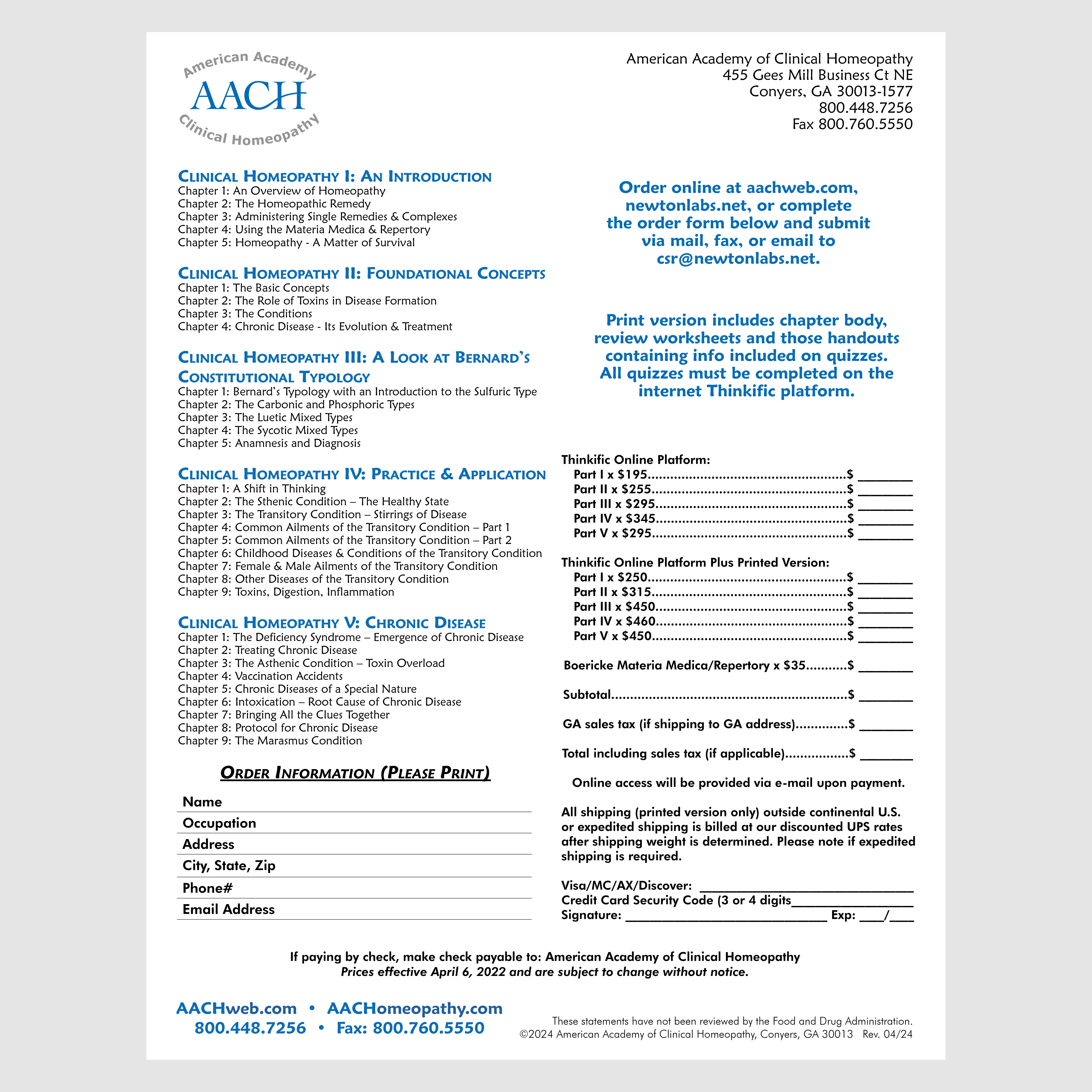 This flyer provides course and registration information for the American Academy of Clinical Homeopathy's Clinical Homeopathy Program. This item is not available to add to orders, but you can click on the link below to view/print/share with family, friends, or colleagues.